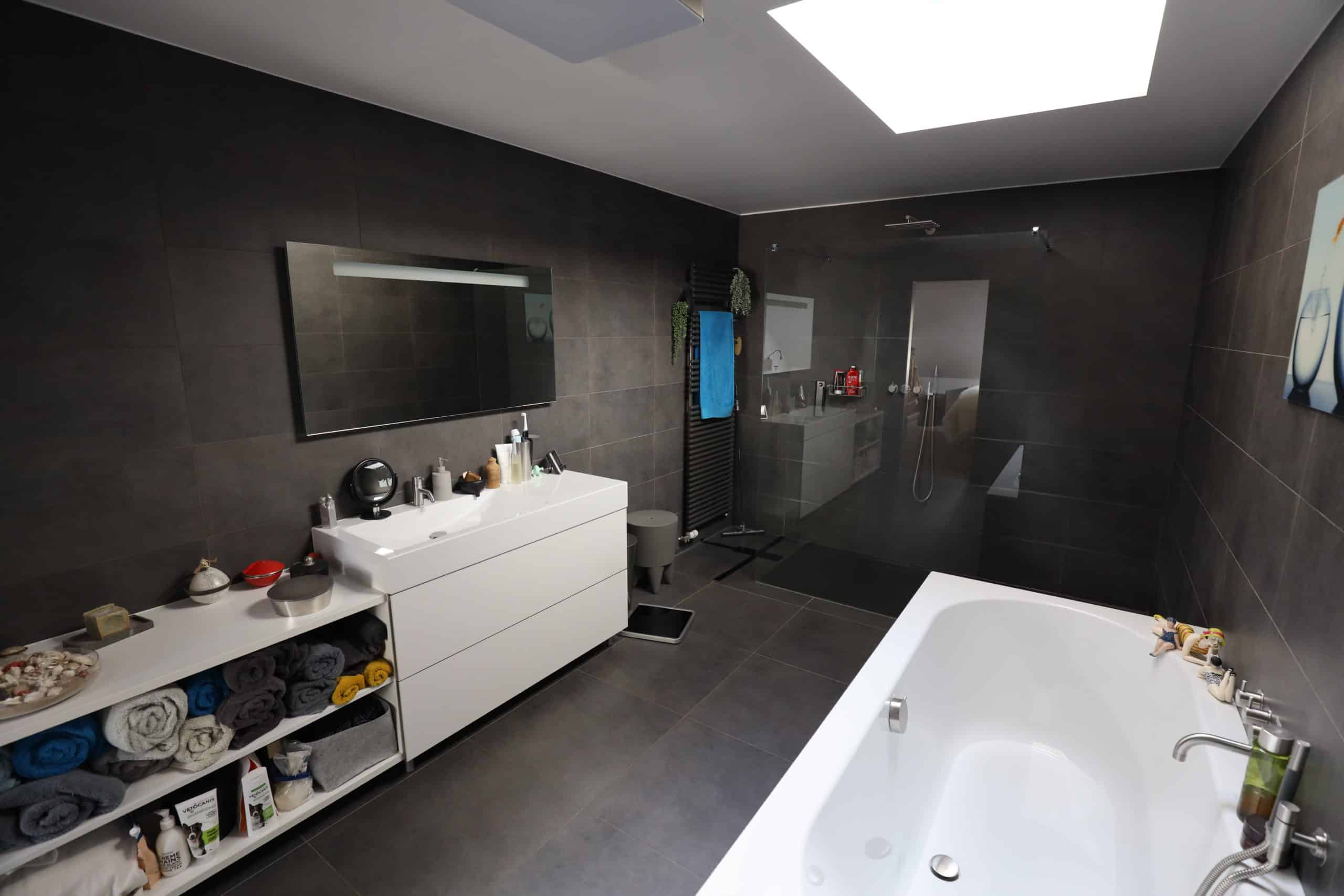 – suite parentale avec salle de bain/WC et dressing (belle hauteur sous plafond avec poutres – charpente)